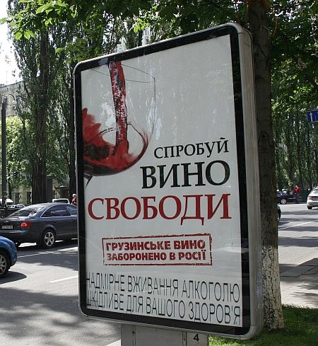 Напередодні приїзду в Київ президента Грузії Михайла Саакашвілі на саміт ГУАМ в Києві з'явилися біл-борди на підтримку грузинського вина.