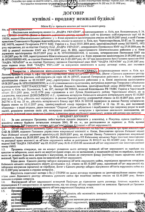 Так, будівля по Володимирській 34/9 літера А була продана "Надрами України" товариству з обмеженою відповідальністю "ЕлітТрансСервіс".