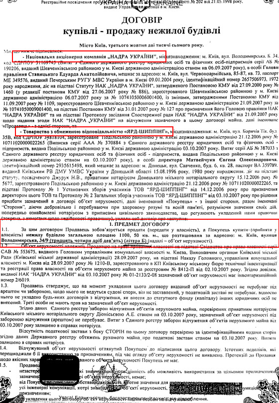 Другу будівлю, по Володимирській 34/9 літера Б компанія "Надра України" переуступила товариству з обмеженою відповідальністю "Ярд-Шиппінг".