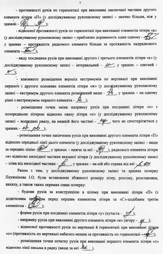 Ще один висновок: запис "Плужников И.А." виконаний імовірно не Плужніковим Ігорем Олександровичем".