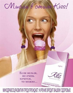 Чому курять діти? Не лише лоботряси, а слухняні пещені батьками дівчатка? Їх аргументацію тонко підмітили російські піарники цигарок "Кісс", які випустили ось таку гламурну рекламу: