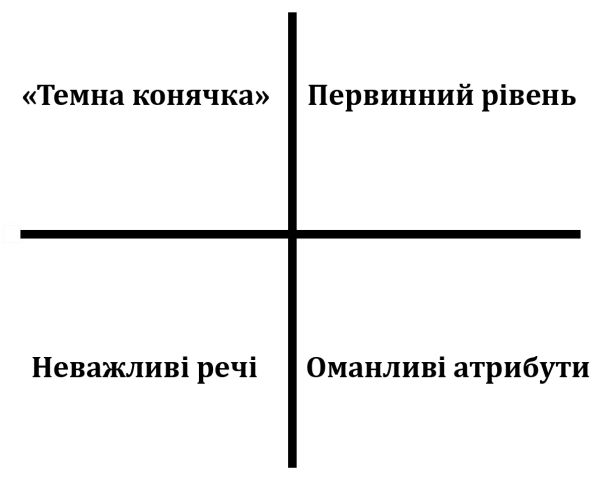 Нарешті четвертий рівень – так звана "темна конячка" – це атрибути, які не піднімаються в дискусії і недооцінені політиками. Однак вони є надійними і дозволяють вигідно виділитися на фоні конкурентів.