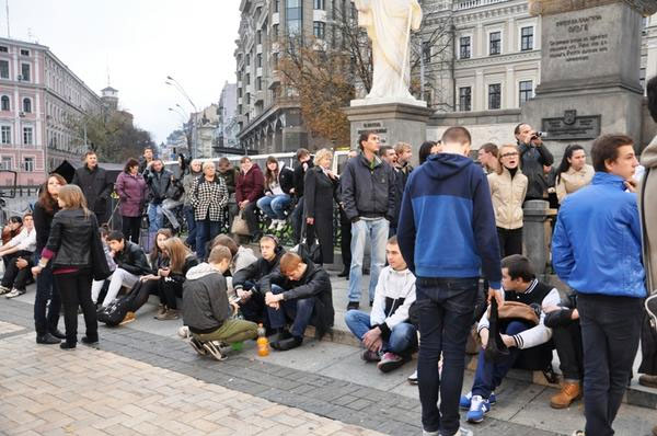 На Михайлівській аншлаг студентів з сємками і пивом. Дуже зацікавлено слухають військовий оркестр. Правда?