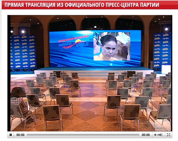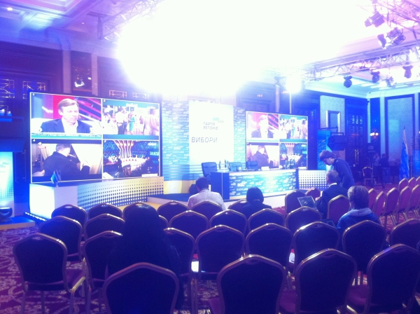 В пресс-центре Партии регионов жизнь замера. В зале нет ни одного (!) представителя партии. Последний подход к журналистам был полтора часа назад. Никаких анонсов и сообщений. Работаю только плазмы с эфирами телемарафонов. Без звука.