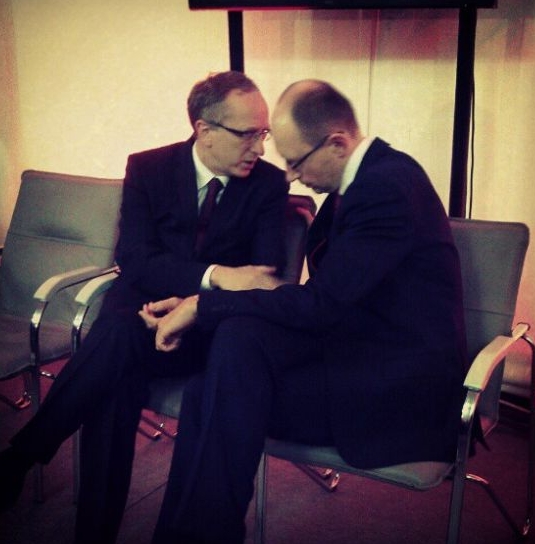 Яценюк (у відповідь два рази підряд) :"Про те, що ви запитали, я готовий розмовляти з Тимошенко Юлією Володимирівною..."