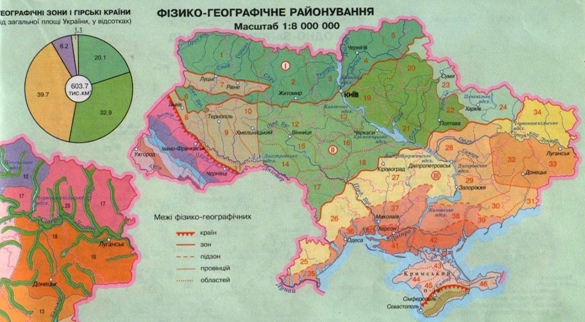 Поділ зумовлений геополітичними особливостями України. Україна поділена на "Ліс" і "Степ".