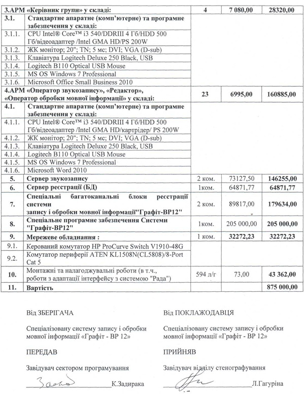 У 2012 році Управління справами Верховної Ради витратило майже 1,5 мільйони гривень на технічне обладнання для організації роботи парламенту. Левова частка від загальної суми коштів, а саме – 875 тисяч гривень, пішла на систему запису й обробки мовної інформації "Графіт-ВР12". Передбачалося, що цей комплекс слугуватиме для підготовки стенограм виступів народних депутатів.
