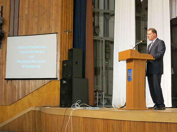 Цього тижня у Києво-Могилянській Академії також відбулася лекція професора Стенфордського університету, директора Центру демократії, верховенства права та розвитку Ларрі Даймонда.