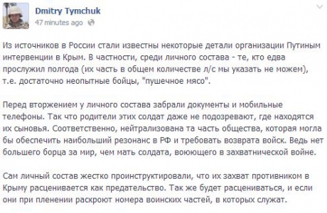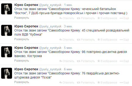 В Криму знаходяться не тільки військові з частин Чорноморського флоту РФ, а й мотострілецький батальйон з Чечні, десантники з Ульяновська і бійці спеціального призначення з Краснодарського краю.