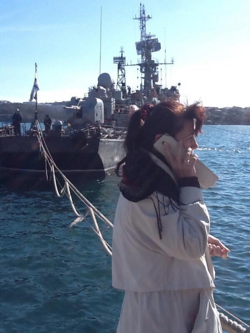 Лиля Тимощук разговаривает с мужем, который находится на забаррикадированном украинском военном корабле "Тернополь"