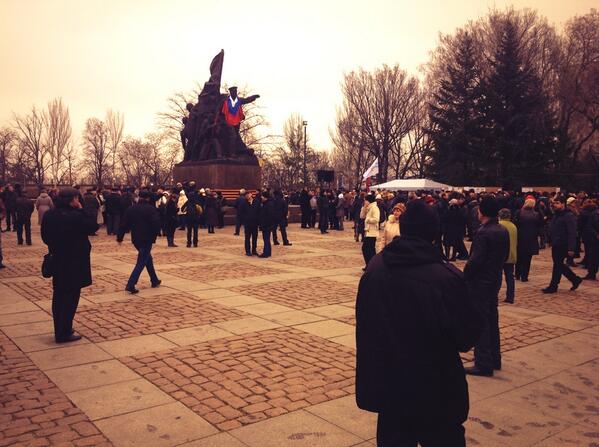 У Феодосії біля військової частини, де знаходиться український батальйон морської піхоти, біля обох виходів російська військова техніка (судячи з прапорців на БТР) та російські військові. Окрім того, агресивно налаштоване "народноє ополчєнія". Вони пред'являють якісь фільчині грамоти, видані Феодосійським міськвиконкомом та вимагають документи. Коли ігнорувати їх вимоги - погрожують розбити камеру та накинутися натовпом. Щойно два солдатика зізналися, що вони з південної Росії. Звідки саме - не кажуть. І не розуміють, навіщо вони тут.