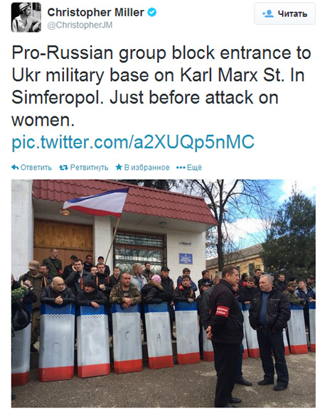 Пророссийски настроенные крымчане блокируют вход на военную базу ул.К.Маркса в Симферополе.