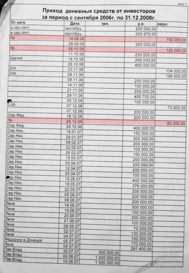 - В одном из документов фигурирует ваша фамилия - сокращенно сказано "Кр". Речь шла о деньгах, которые заносили Януковичу. Насколько я понимаю, это были деньги, которые собирали в интересах Януковича разные люди и приносили их в общак.