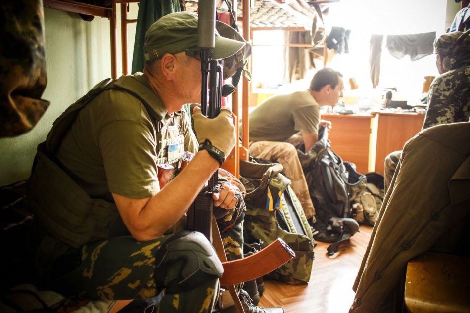...Командир "Айдару" Сергій Мельничук зустрічає нас у невеликому кабінеті кількома поверхами нижче. Комбат втомлений, телефон дзвонить щоп'ять хвилин, двері його кімнати постійно відчиняють-зачиняють.