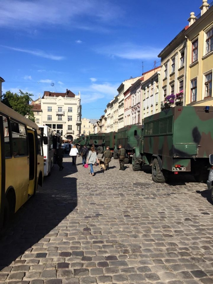 У цей день Ратушу охороняло кількасот бійців Нацвардії в бронежилетах, які приїхали в середмістя на військових машинах. Такого у Львові за часів незалежності не було ніколи.