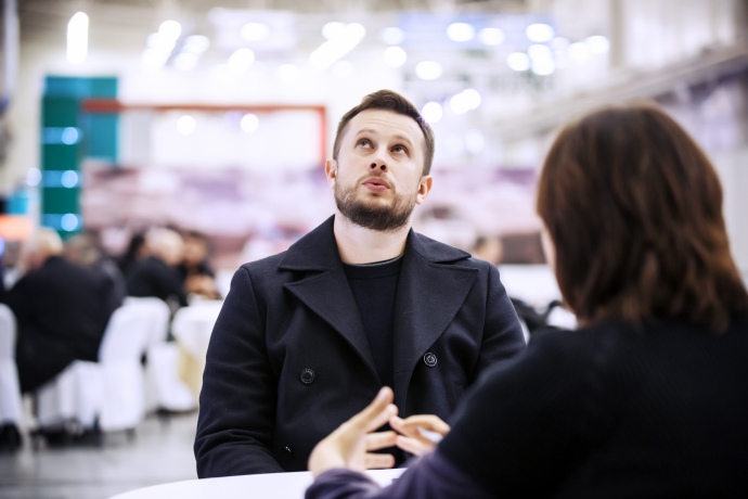 Розмова відбулася на виставці сучасного озброєння, де екс-комбат "Азову" в оточенні трьох охоронців майже дві години з неабиякою цікавістю оглядав експонати, спілкуючись з їхніми виробниками.