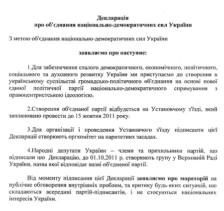 | Декларація, що ставилася на голосуванні політради Нашої України |