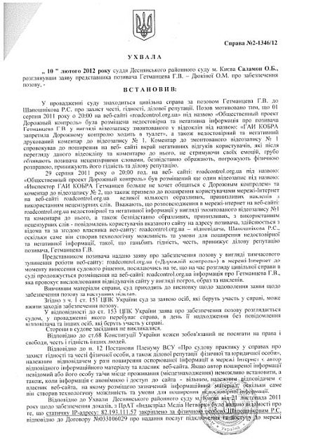 За їхніми словами, дане рішення було прийнято без відома "Дорожнього контролю" в справі за позовом інспектора "Кобри" ДАІ МВС Гетьманцева Г.В. до "Дорожнього контролю".