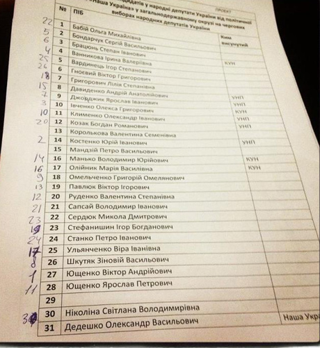 Згодом став відомий попередній список кандидатів у народні депутати від партії "Наша Україна".