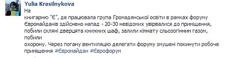 На книгарню "Є" у Харкові, де працювала група Громадянської освіти в рамках форуму Євромайданів здійснено напад.