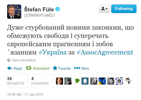 "Дуже стурбований новими законами, що обмежують свободи і суперечать європейським прагненням і зобов´язанням України", - написав він в своєму акаунті в соцмережі.