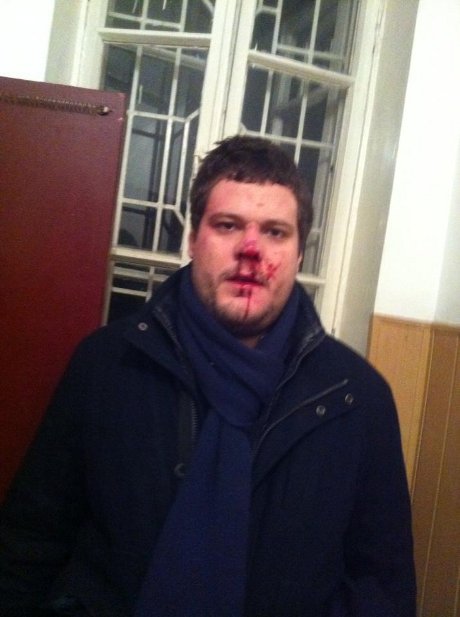 "Сидору Кізіну в 17-й лікарні у відділенні політравми зашили рвану рану правоі щоки (5см). Андрію Іллєнку діагностують струс мозку, численні забої", - повідомив пізніше у Twitter лідер Свободи Олег Тягнибок.