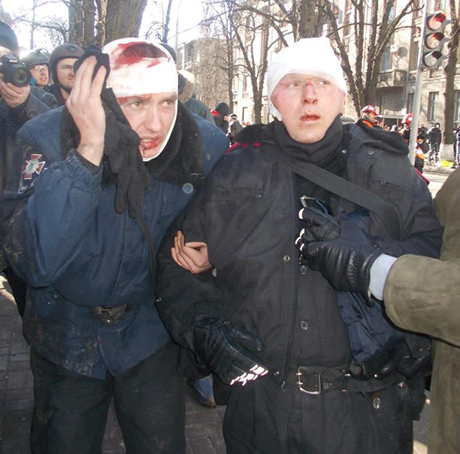 Правоохоронці були в порваному одязі, без головних уборів, на обличчях було видно кров.