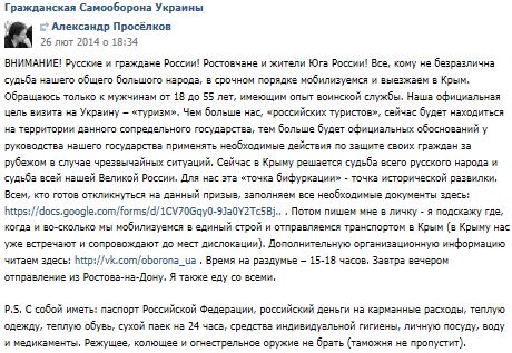У соцмережах закликають російських чоловіків їхати у Крим, Донецьк та Харків, як найважливіші "пункти опору".