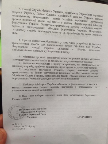 "Мобілізація проводиться протягом 45 діб із дня набрання чинності цим Указом", - йдеться в указі Турчинова.