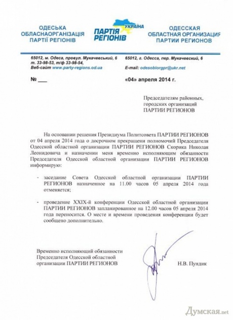 Новим лідером одеських регіоналів став колишній голова облради Микола Пундик.