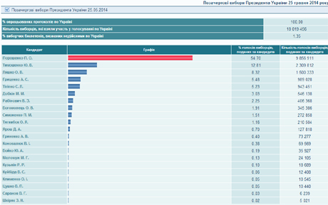 Таким чином Петро Порошенко переміг у першому турі.