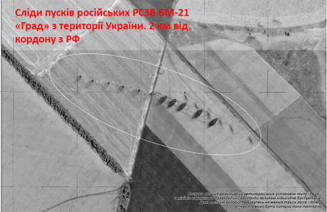 | Сліди пусків російських Градів з території україни 2 км від Кордону |