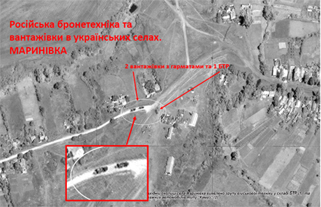 | Російська бронетехніка та вантажівки в українських селах. Маринівка |