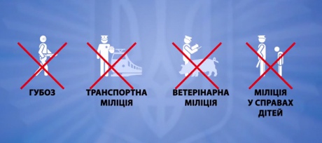 Будуть ліквідовані такі органи як ГУБОЗ, транспортна міліція, ветеринарна міліція, міліція у справах дітей.