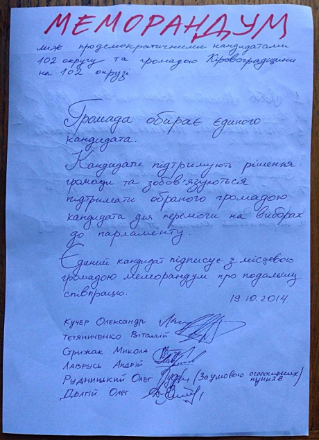 "Усі шестеро підписали відповідний Меморандум. Єдиний кандидат був представлений на віче в Світловодську", - додав він.