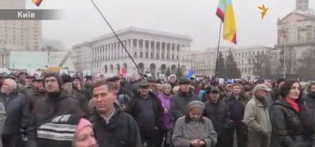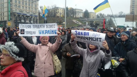 Зі сцени лунають заклики "скинути злочинну владу", невдоволення діючим президентом та прем'єр-міністром.