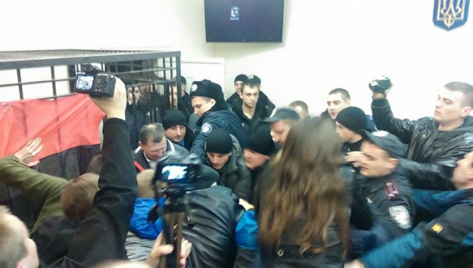 Як повідомляє кореспондент УП, після оголошення ухвали суду у залі відбулася невелика штовханина.
