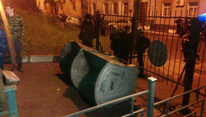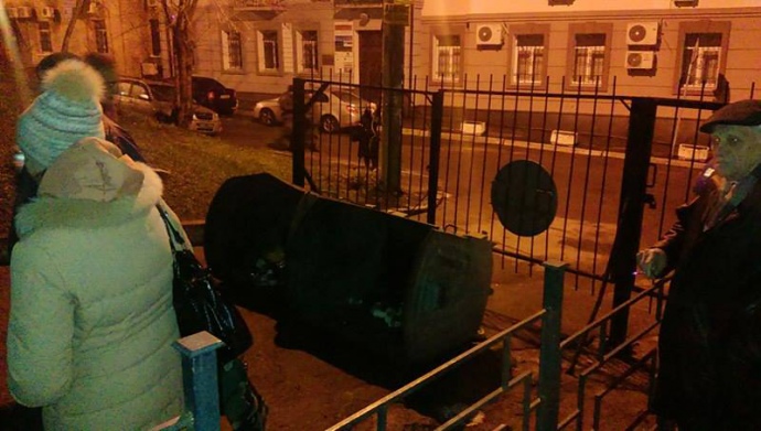 Прихильники Краснова перегородили виїзд з подвір'я суду.