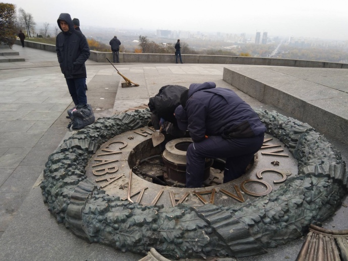 Як повідомляє кореспондент "Української правди", співробітники "Київгазу" чистять Вічний вогонь.