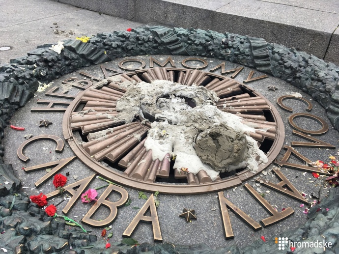 У ніч із 6 на 7 листопада невідомі залили цементним розчином Вічний вогонь у парку Вічної Слави в столиці.