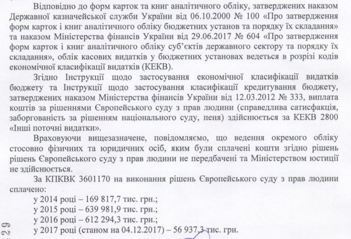У Міністерстві юстиції заявляють, що не ведуть окремого обліку громадян та фірм, яким виплатили відшкодування за рішеннями Європейського суду з прав людини.