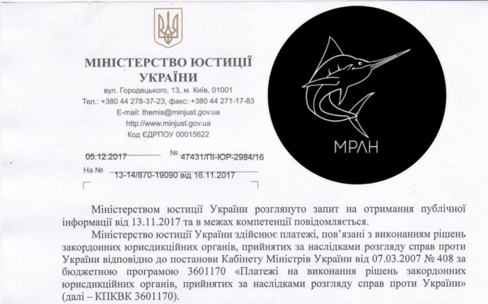 У Мін'юсті стверджують, що виплатили ці гроші київській компанії "Золотий мандарин ойл" за рішенням Європейського суду з прав людини і зробили це законно.