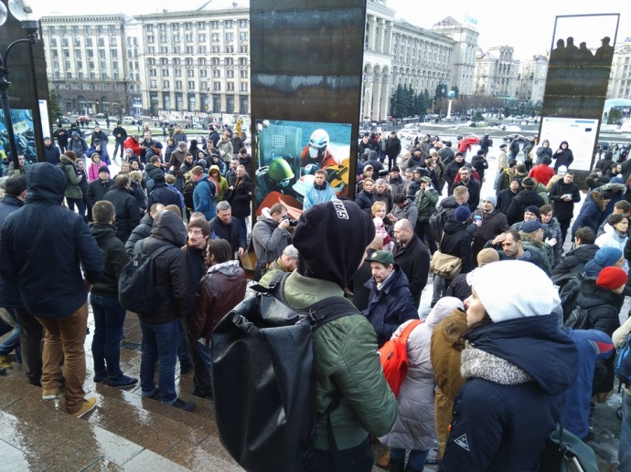 На Майдані під Стелою Незалежності зібралися учасники акції з вимогою справедливого вироку для керівника "титушок" Юрія Крисіна, причетного до побиття "майданівців" та вбивства журналіста газети "Вести" В'ячеслава Веремія.