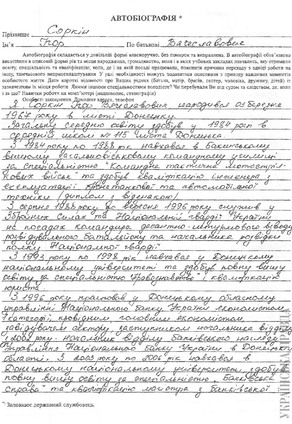 Ігор Соркін - це втілення прагнень Сім'ї Януковича контролювати друкарський верстат держави. "Українській правді" вдалося отримати його "особову справу", підготовлену відділом кадрів.