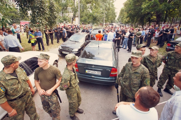 — Я действую в рамках законодательства. Нам сперва нужно дождаться решения суда. Да и вообще, а вдруг там — бомба. И не могу я открыть машину, они закрылись изнутри, — говорит он окружающим, когда они напирают на милицию с требованием вскрыть машину.