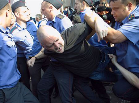 Российская милиция разогнала акцию протеста оппозиции на Триумфальной площади в Москве.