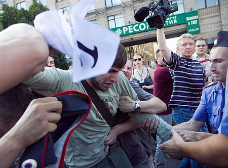 На аналогичной акции в Санкт-Петербурге милиция задержала 64 человека. В сообщениях отмечается, что задержания проходили очень грубо, некоторым участникам разбили головы, девушек тащили за волосы.