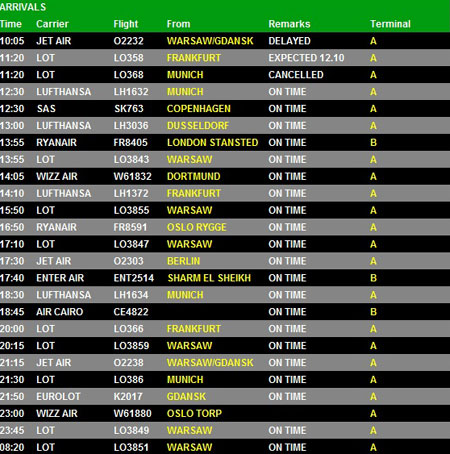 Так, по состоянию на 13:20 задерживается вылет в Берлин, а также посадка самолета Гданьск - Варшава.