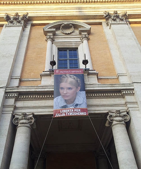 В понедельник в Риме на фасаде одного из зданий Капитолийского холма был вывешен портрет экс-премьера с надписью "Свободу для Юлии Тимошенко".