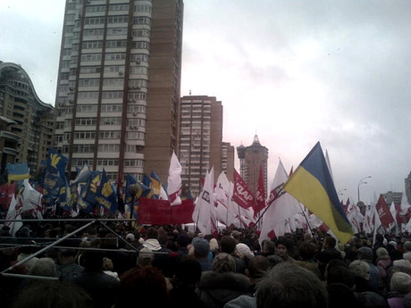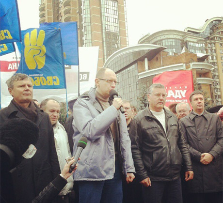 Также перед собравшимися выступили лидер "Свободы" Олег Тягнибок, один из лидеров оппозиции Арсений Яценюк и лидер "УДАРа" Виталий Кличко.